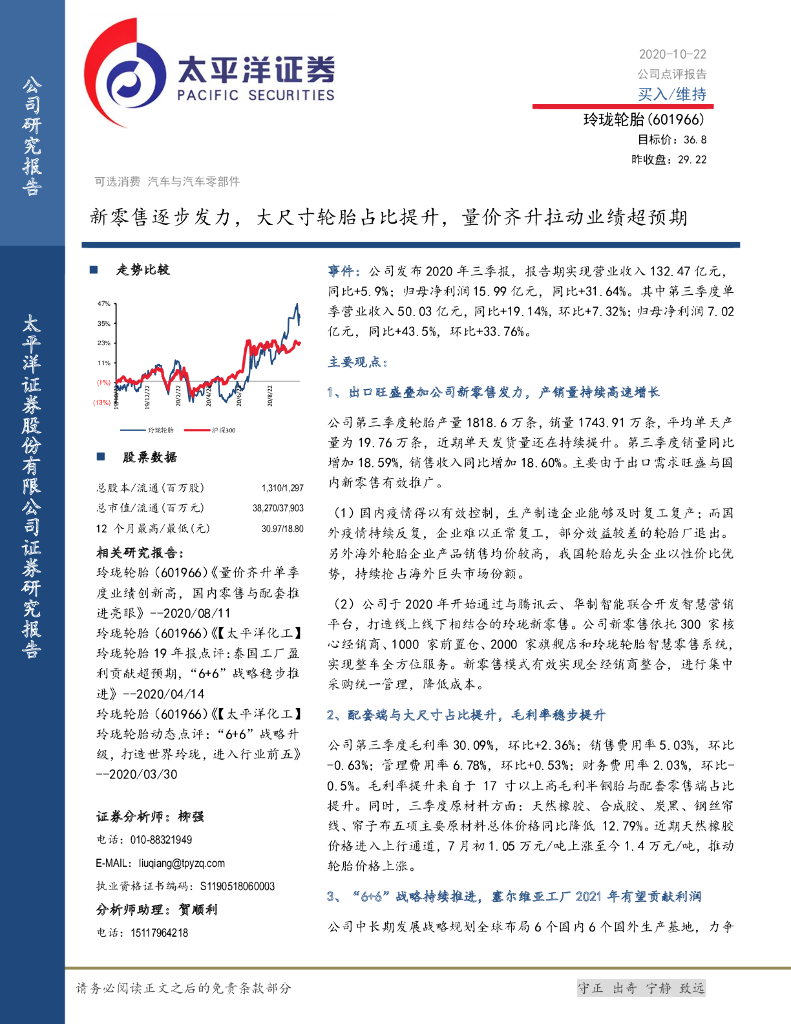太平洋证券:玲珑轮胎(601966)-新零售逐步发力,大尺寸轮胎占比提升,量价齐升拉动业绩超预期.pdf