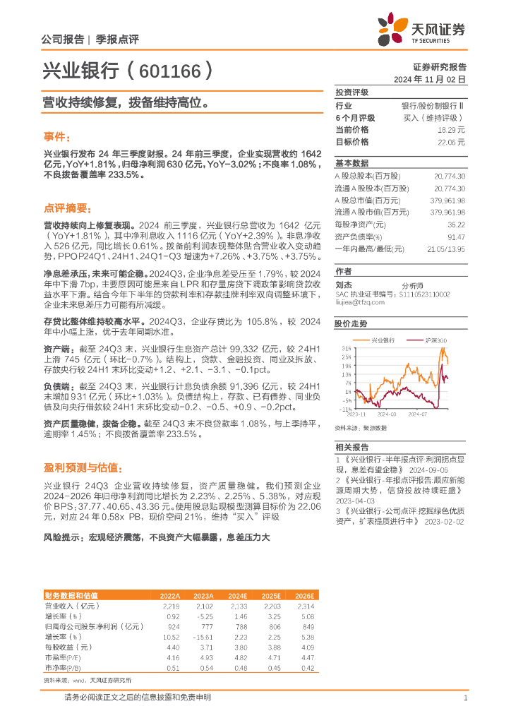 天风证券:兴业银行(601166)-营收持续修复,拨备维持高位.pdf