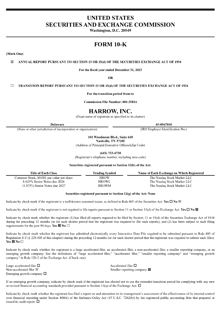 Harrow Health, Inc.(HROW)2023财年年度报告(英文版).pdf