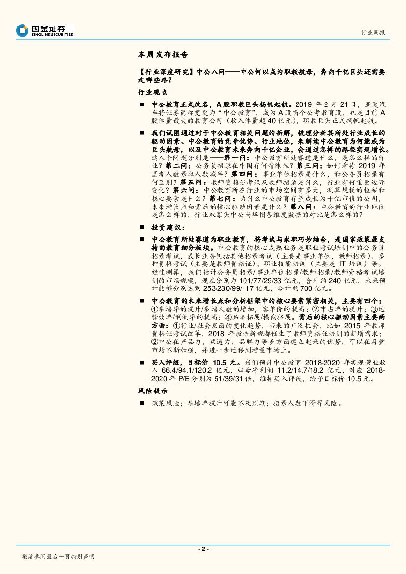 国金证券:2019教育行业周报第8期:希望教育&宝宝树集团3月11日将进入港股通,持续关注港股学历教育公司.pdf