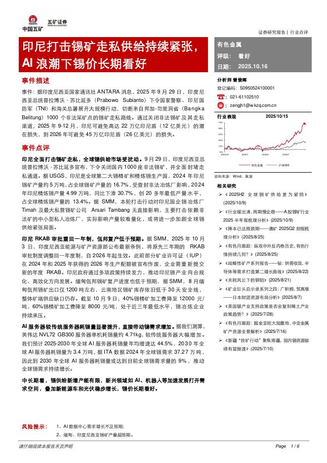 五矿证券:有色金属:印尼打击锡矿走私供给持续紧张,AI浪潮下锡价长期看好.pdf