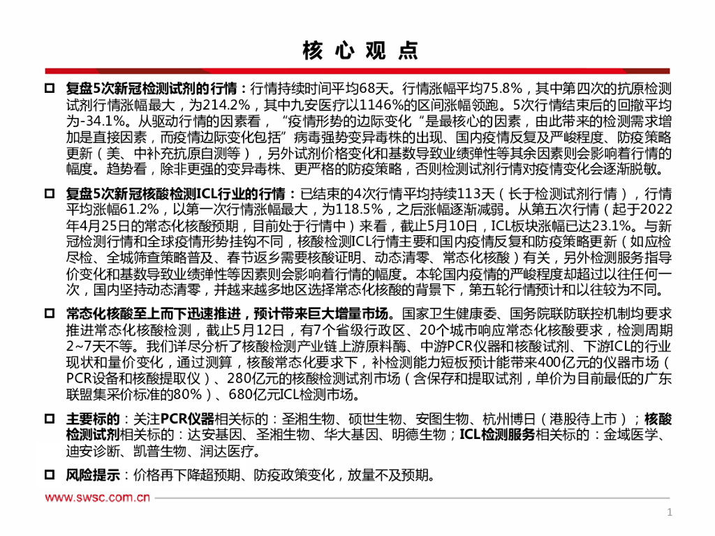 西南证券:医药:新冠检测历次行情复盘-看当前常态化核酸的空间和未来潜在机会.pdf