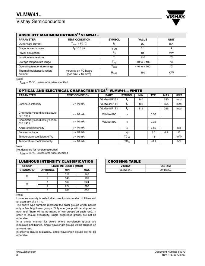 VISHAY - Vishay Semiconductors VLMW41.. 数据手册.pdf