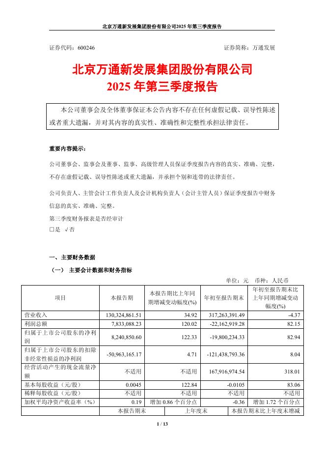 600246-万通发展:2025年第三季度报告.pdf