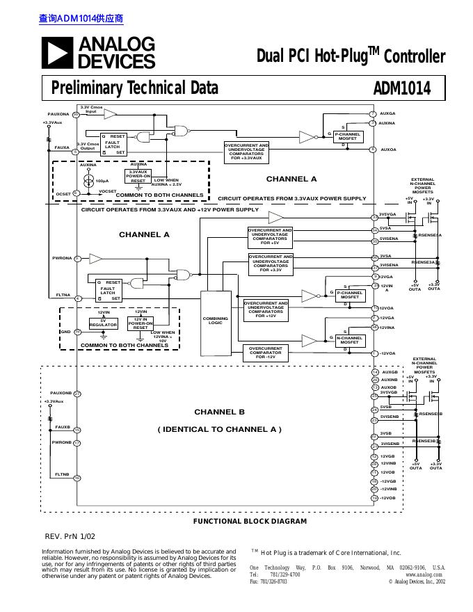 ANALOG DEVICES ADM1014 Dual PCI Hot-Plug Controller 数据手册.pdf