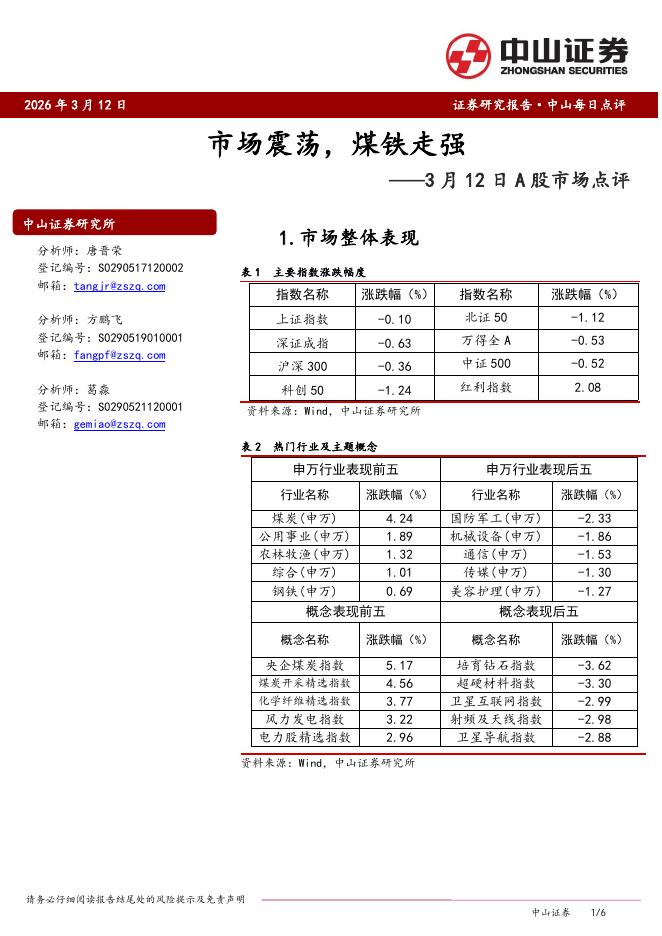 中山证券:3月12日A股市场点评:市场震荡,煤铁走强-260313.pdf