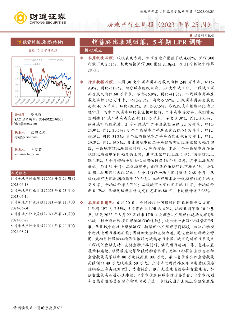 财通证券:房地产行业周报(2023年第25周):销售环比表现回落,5年期LPR调降.pdf