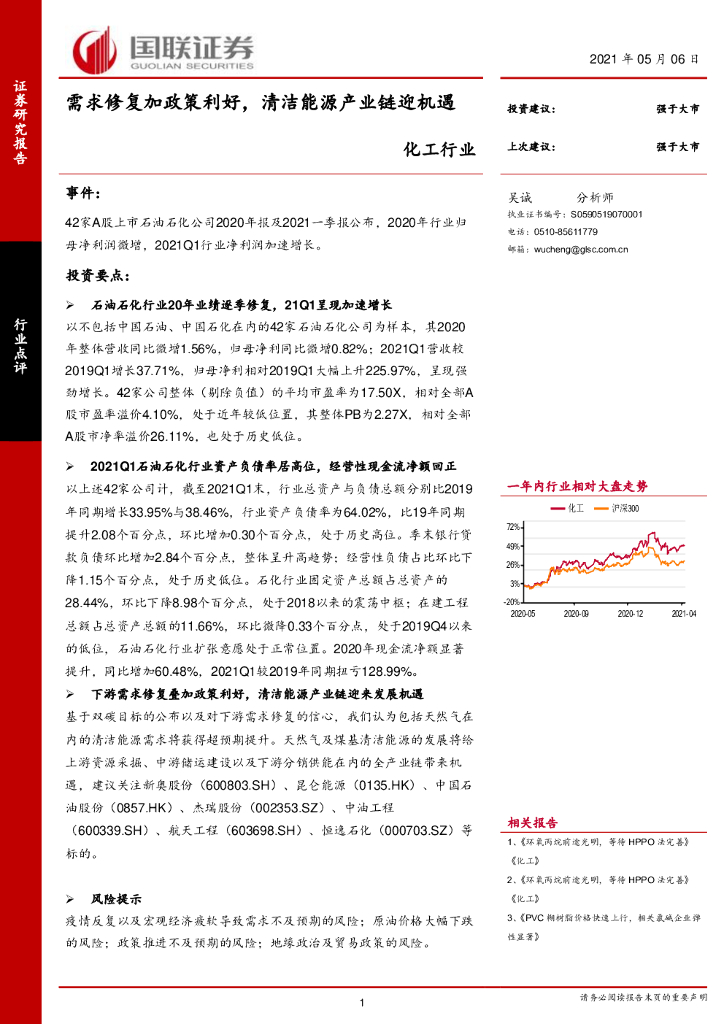 国联证券:化工行业:需求修复加政策利好,清洁能源产业链迎机遇.pdf