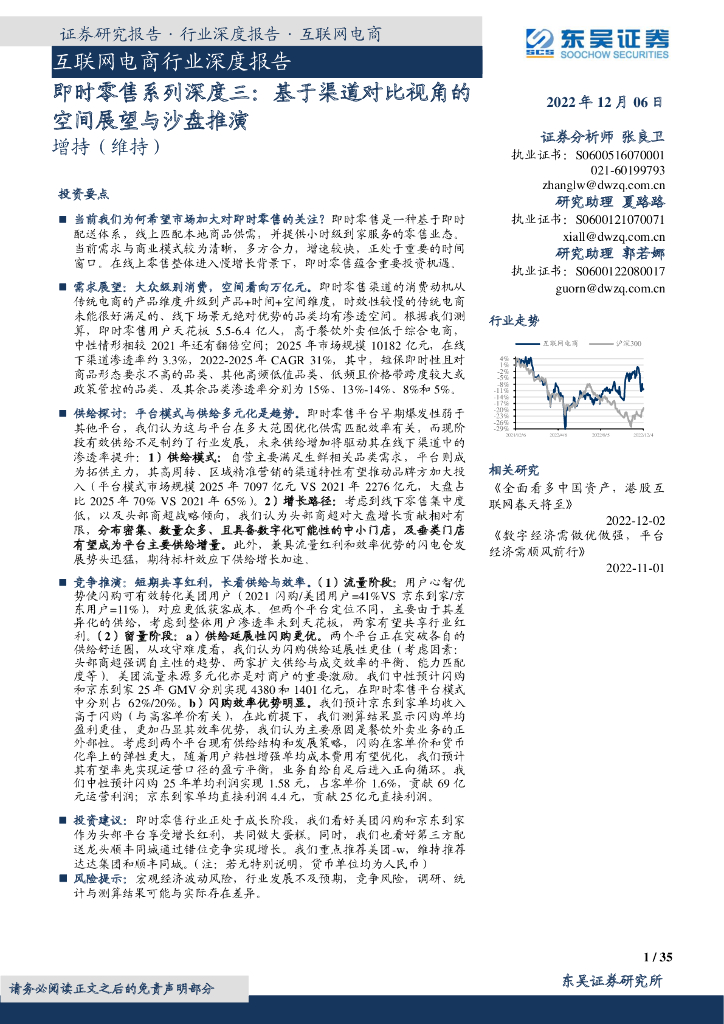 东吴证券:互联网电商行业深度报告:即时零售系列深度三:基于渠道对比视角的空间展望与沙盘推演.pdf