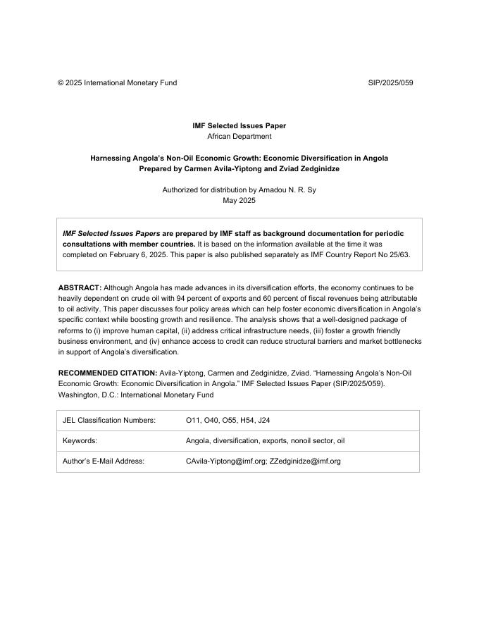 国际货币基金组织:利用安哥拉的非石油经济增长:安哥拉的经济多样化(英文版).pdf