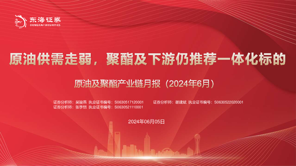 东海证券:原油及聚酯产业链月报(2024年6月):原油供需走弱,聚酯及下游仍推荐一体化标的.pdf