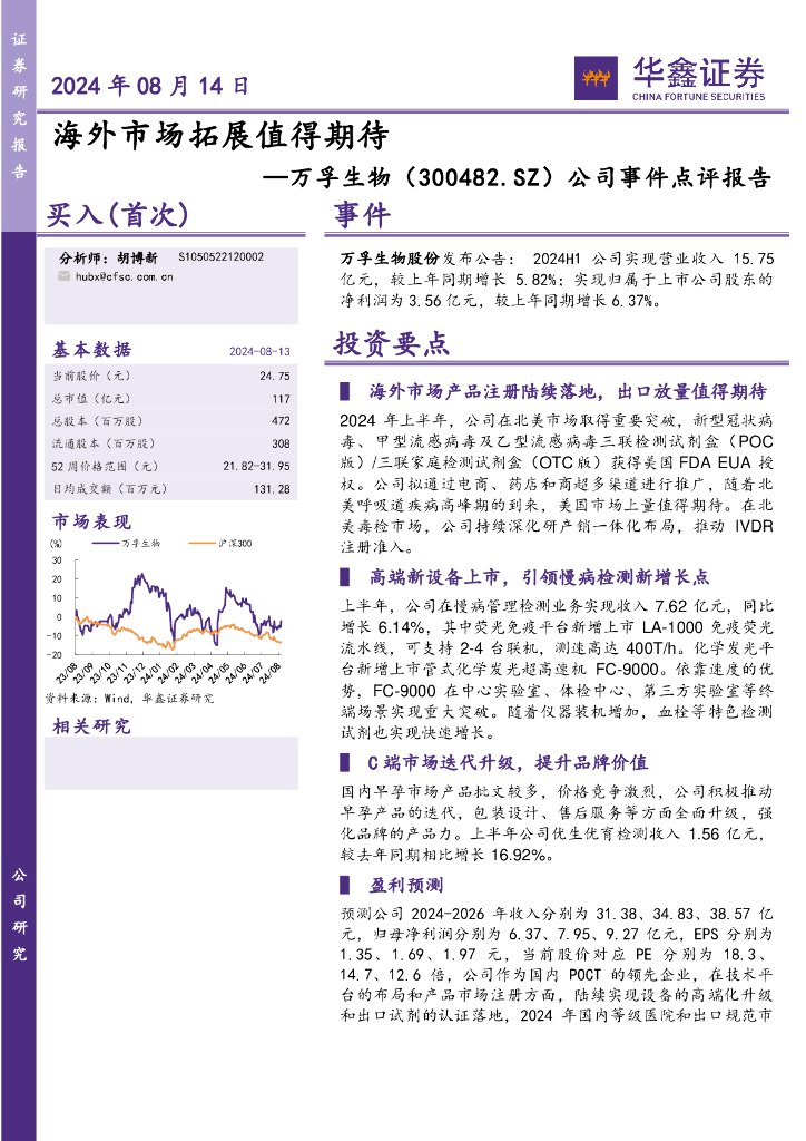 华鑫证券:万孚生物(300482)-公司事件点评报告:海外市场拓展值得期待.pdf