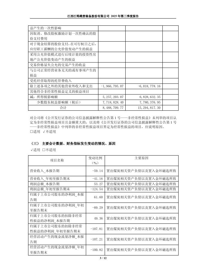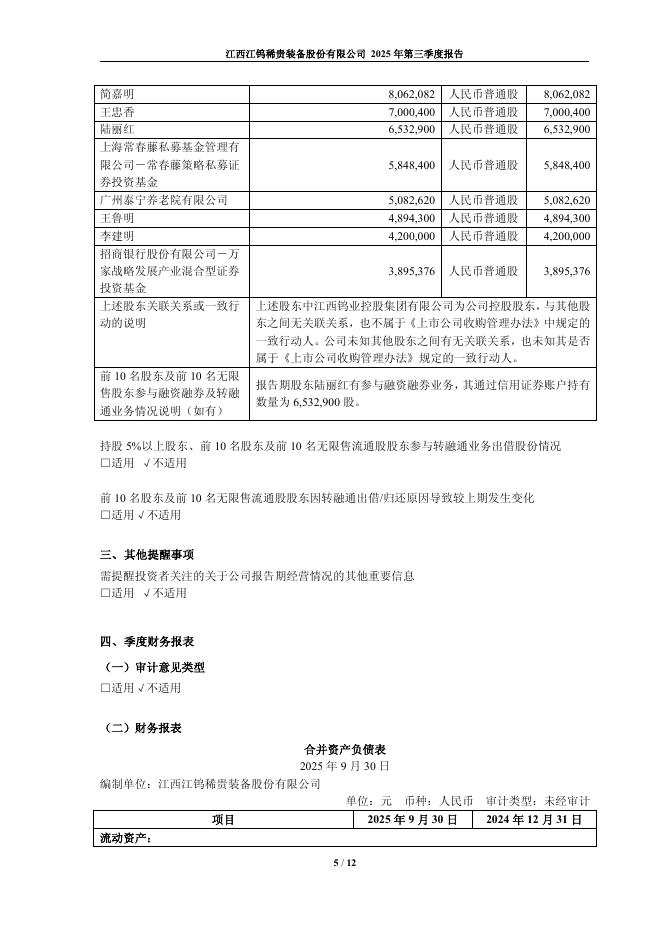 600397-江钨装备:江西江钨稀贵装备股份有限公司2025年第三季度报告.pdf