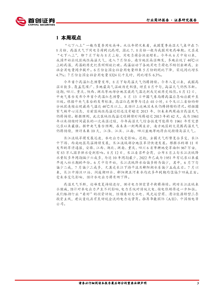 首创证券:公用事业行业简评报告:首个高温红色预警发布,迎峰度夏持续进行.pdf