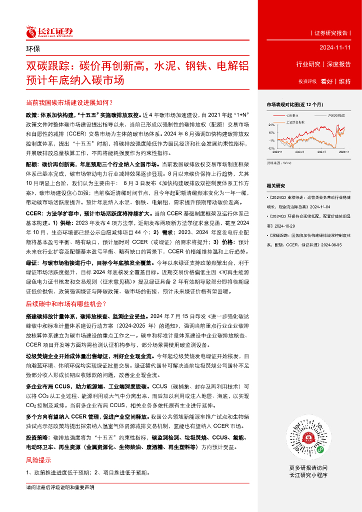 长江证券:环保行业双碳跟踪:碳价再创新高,水泥、钢铁、电解铝预计年底纳入碳市场.pdf