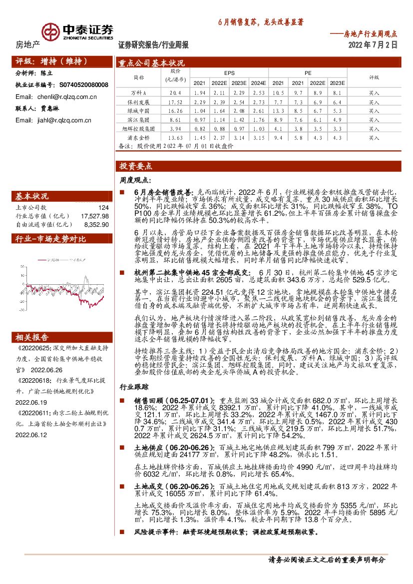 中泰证券:房地产行业周观点:6月销售复苏,龙头改善显著.pdf