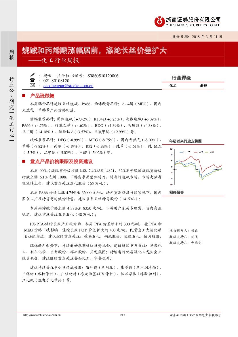 浙商证券:化工行业周报:烧碱和丙烯酸涨幅居前,涤纶长丝价差扩大.pdf