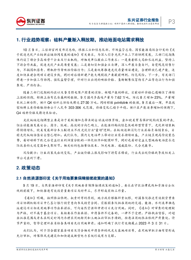 东兴证券:电力设备与新能源行业月报(2022年10月):硅料产量渐入释放期,推动地面电站需求释放.pdf