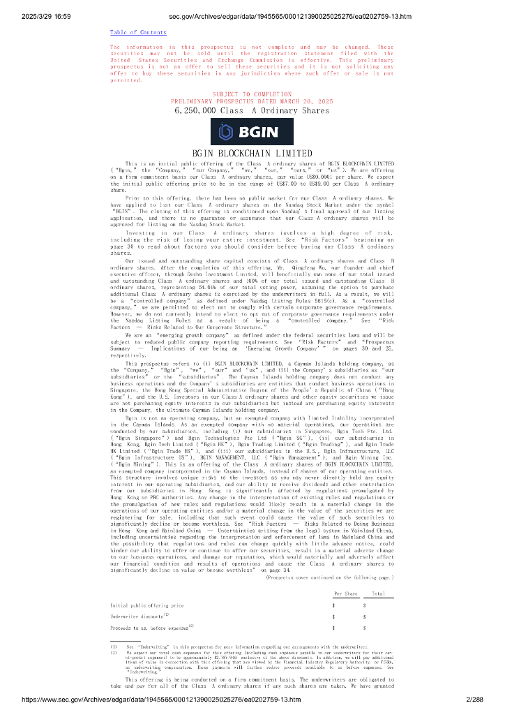 BGIN Blockchain Limited美股纳斯达克IPO上市招股说明书.pdf