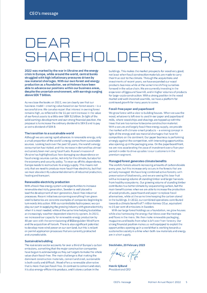 Holmen(HLMNY)2022财年年度报告(英文版).pdf