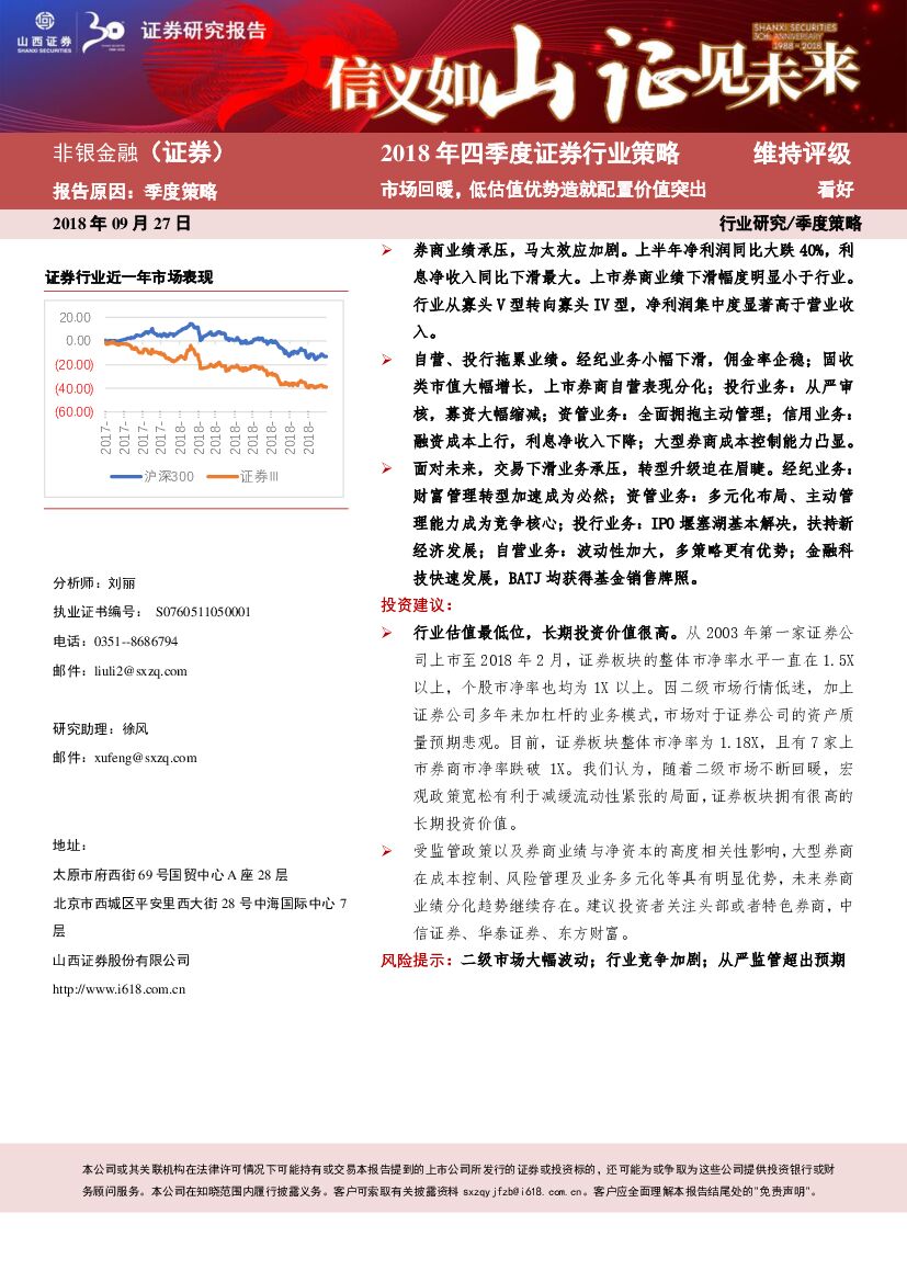 山西证券:2018年四季度证券行业策略:市场回暖,低估值优势造就配置价值突出.pdf