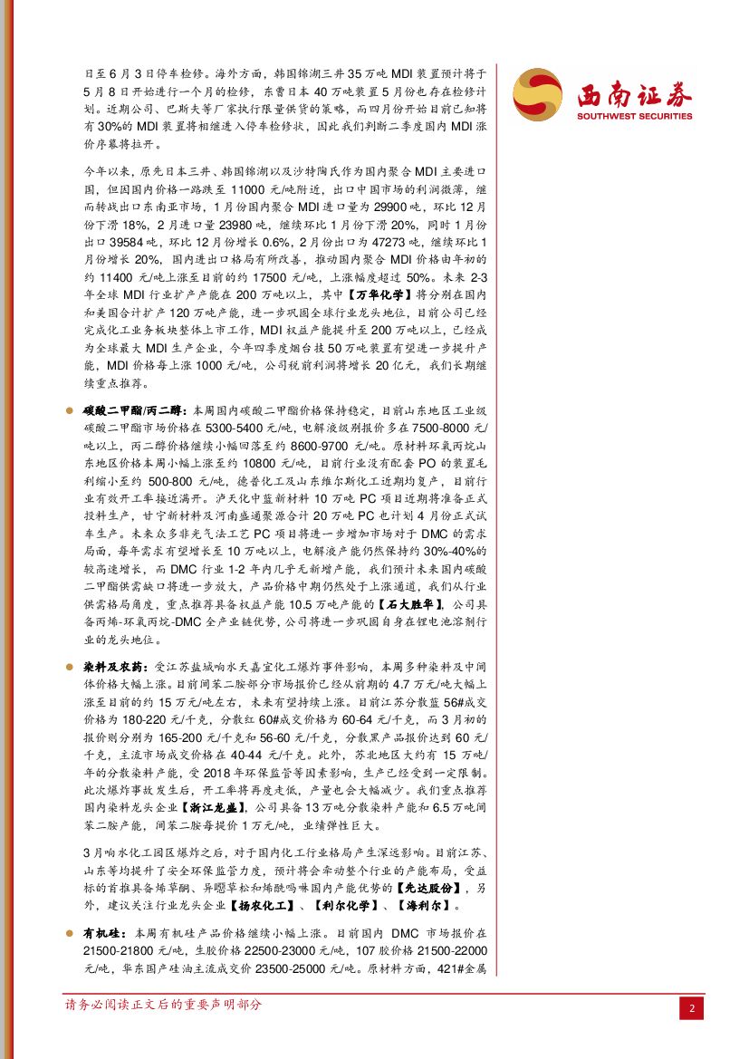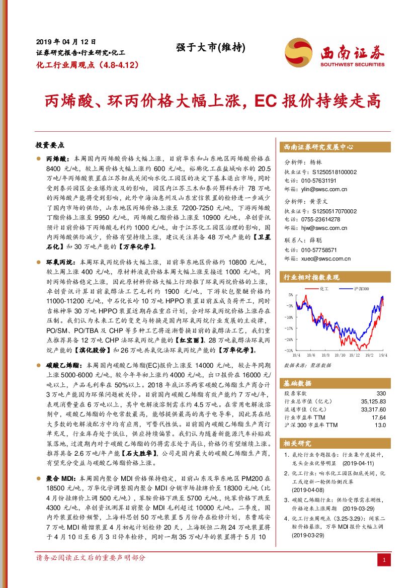 西南证券:化工行业周观点:丙烯酸、环丙价格大幅上涨,EC报价持续走高.pdf