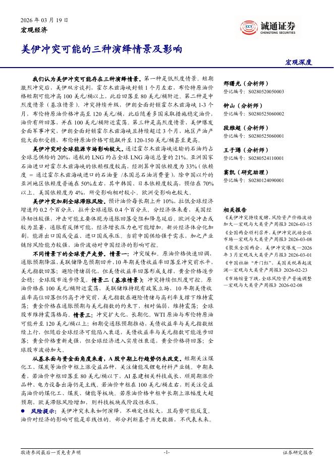 诚通证券:宏观经济:美伊冲突可能的三种演绎情景及影响-260319.pdf