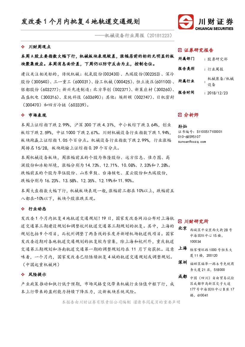 川财证券:机械设备行业周报:发改委1个月内批复4地轨道交通规划.pdf