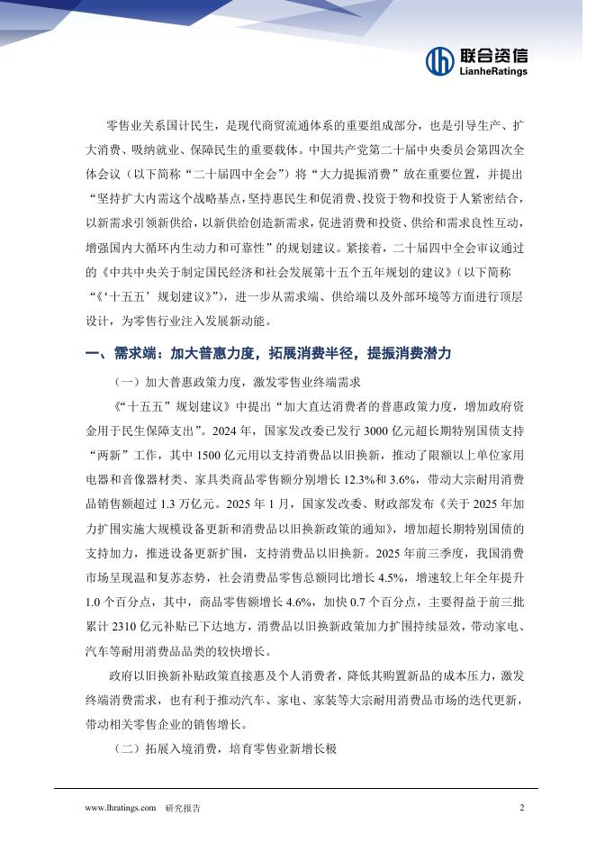 联合资信:2025年消费提振引领零售行业新征程-《“十五五”规划建议》解读.pdf