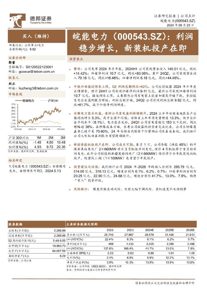 德邦证券:皖能电力(000543)-利润稳步增长,新装机投产在即.pdf