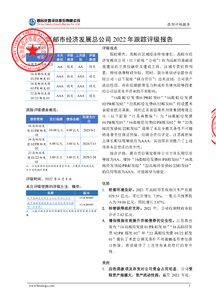 联合资信:高邮市经济发展总公司2022年跟踪评级报告.pdf
