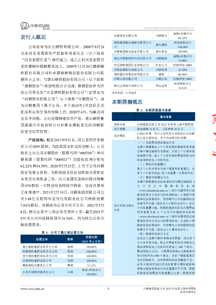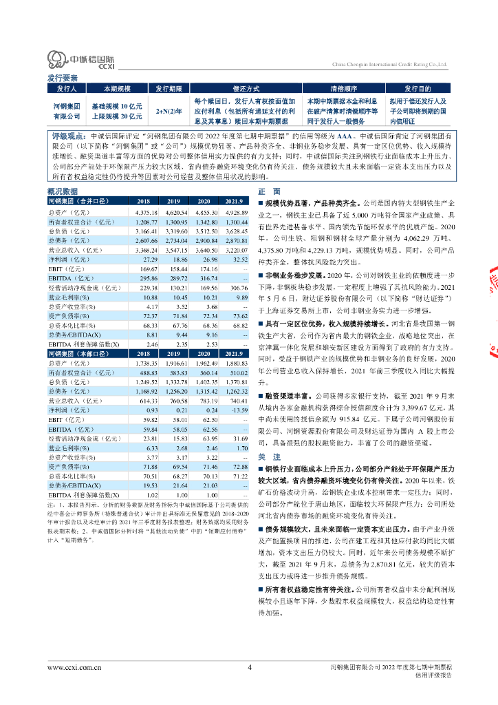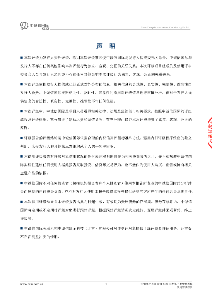中诚信:河钢集团有限公司2022年度第七期中期票据信用评级报告及跟踪评级安排.pdf