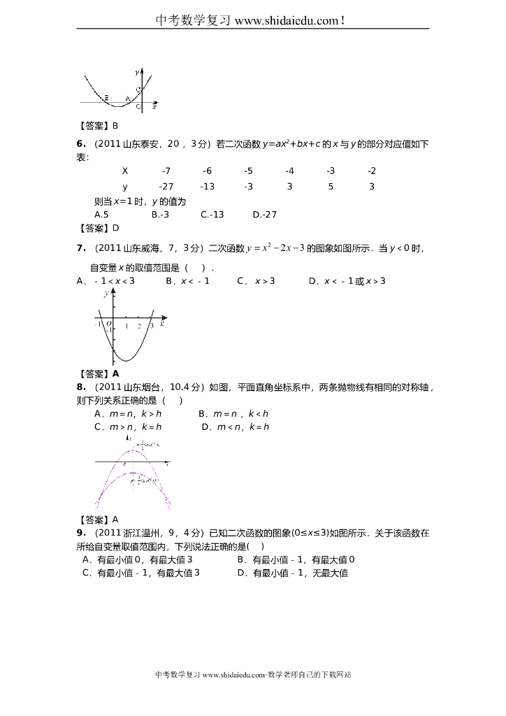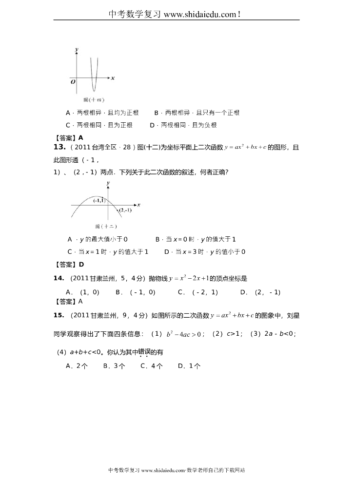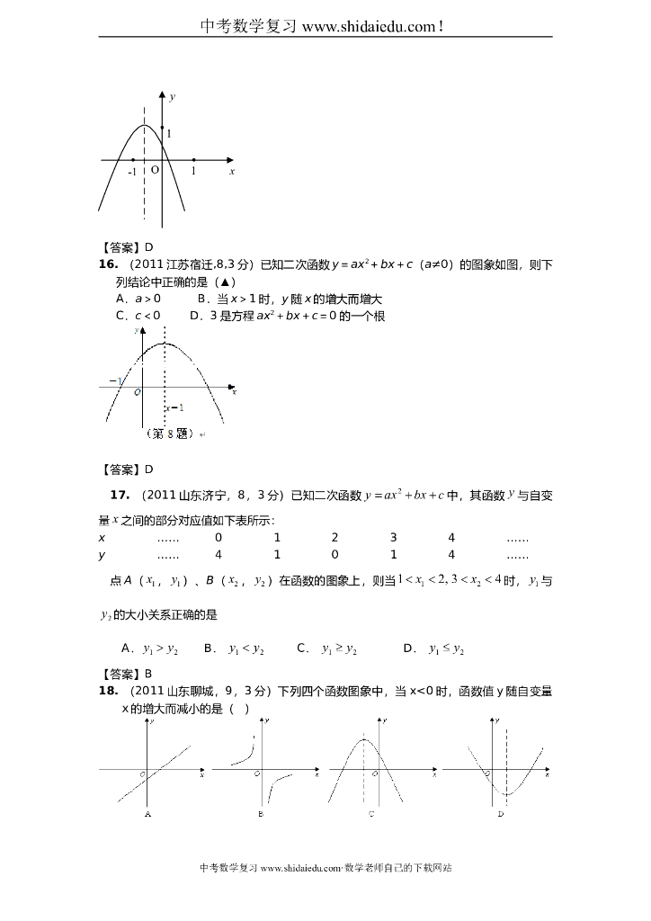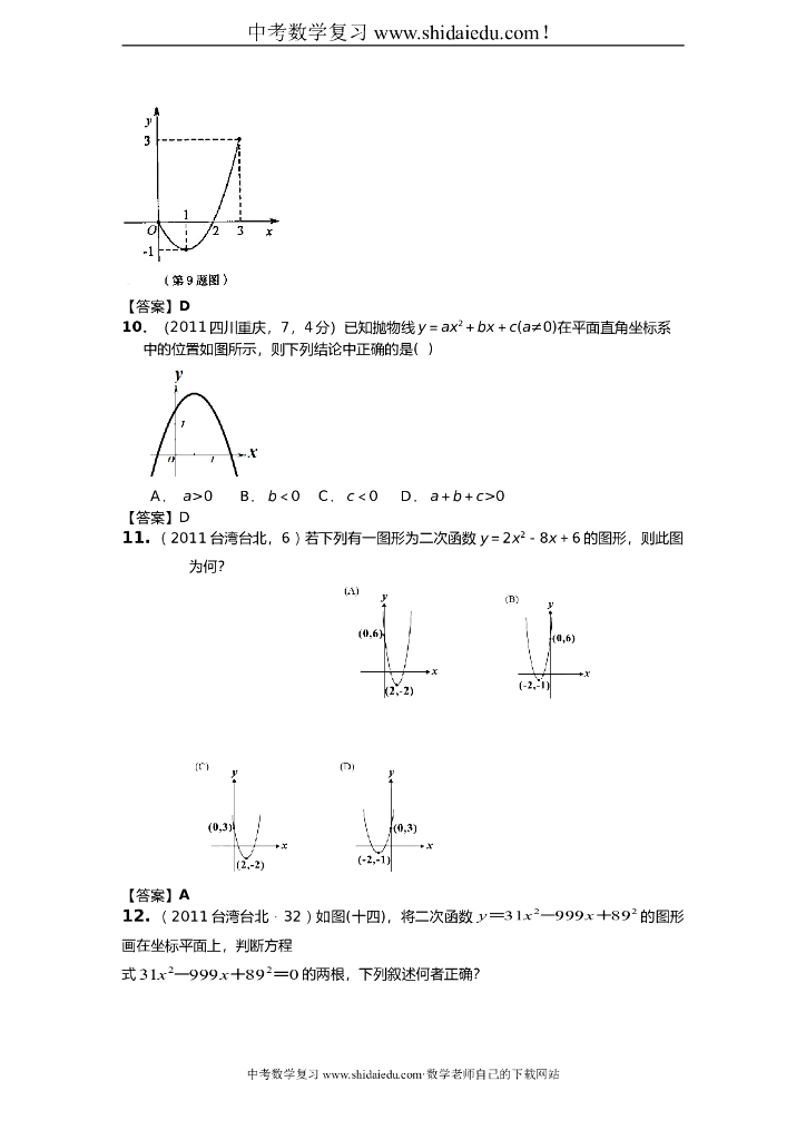 全国各地中考数学真题分类汇编:第13章---二次函数.doc