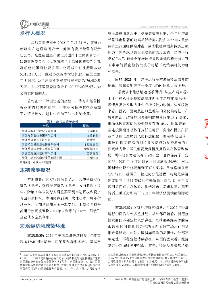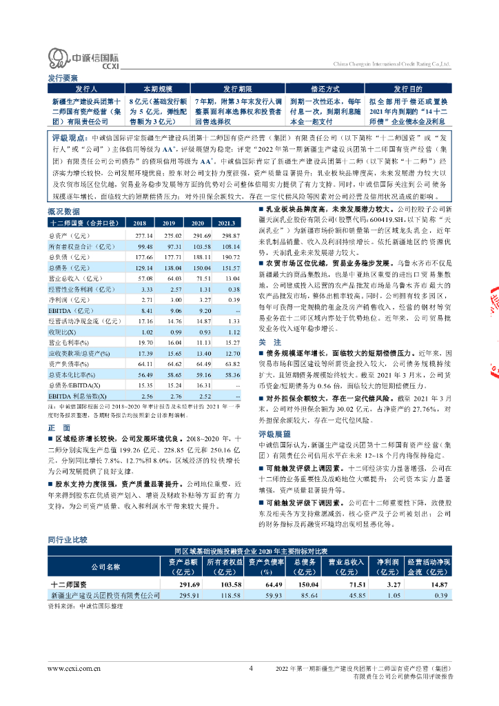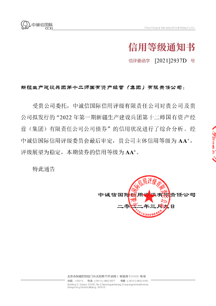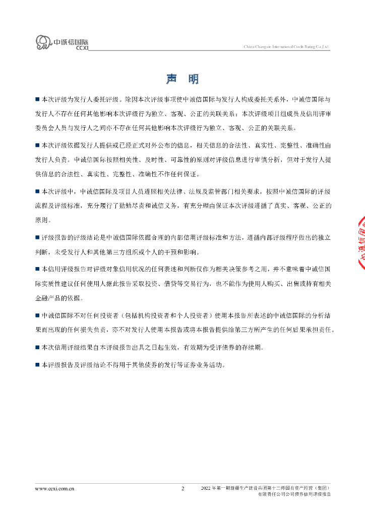 中诚信:2022年第一期新疆生产建设兵团第十二师国有资产经营(集团)有限责任公司公司债券信用评级报告.pdf
