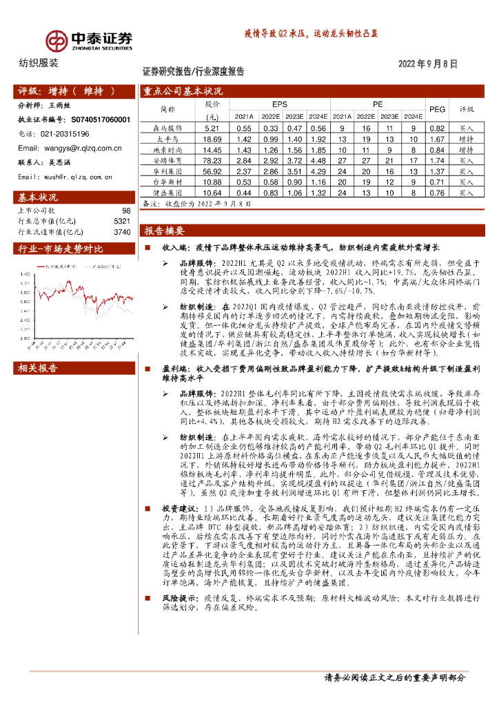 中泰证券:纺织服装行业深度报告:疫情导致Q2承压,运动龙头韧性凸显.pdf