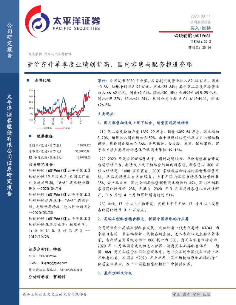 太平洋证券:玲珑轮胎(601966)-量价齐升单季度业绩创新高,国内零售与配套推进亮眼.pdf