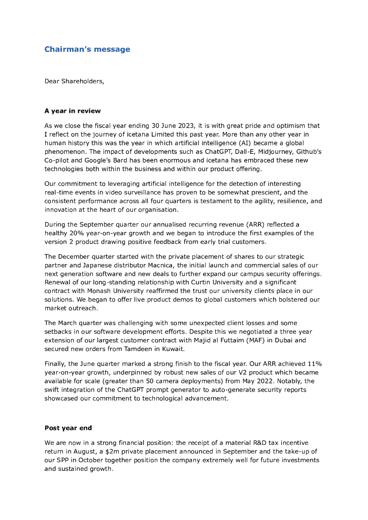 iCetana Limited(ICE)2023财年年度报告(英文版).pdf