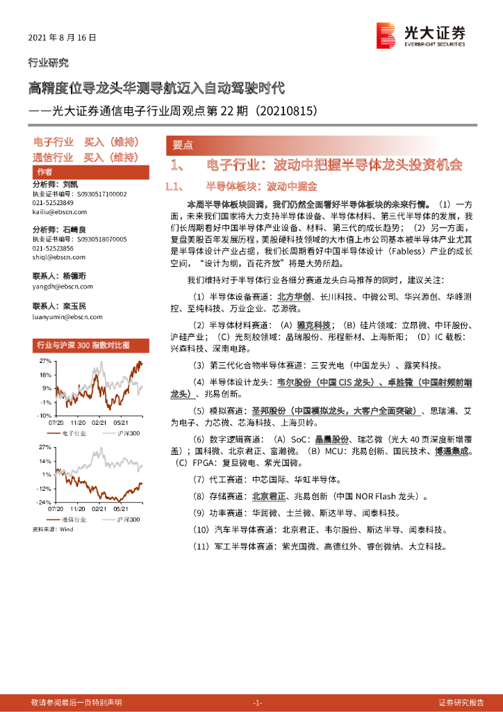 光大证券:通信电子行业周观点第22期:高精度位导龙头华测导航迈入自动驾驶时代.pdf