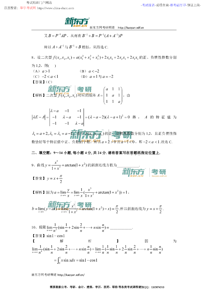 2016年考研数学二真题及答案解析.pdf