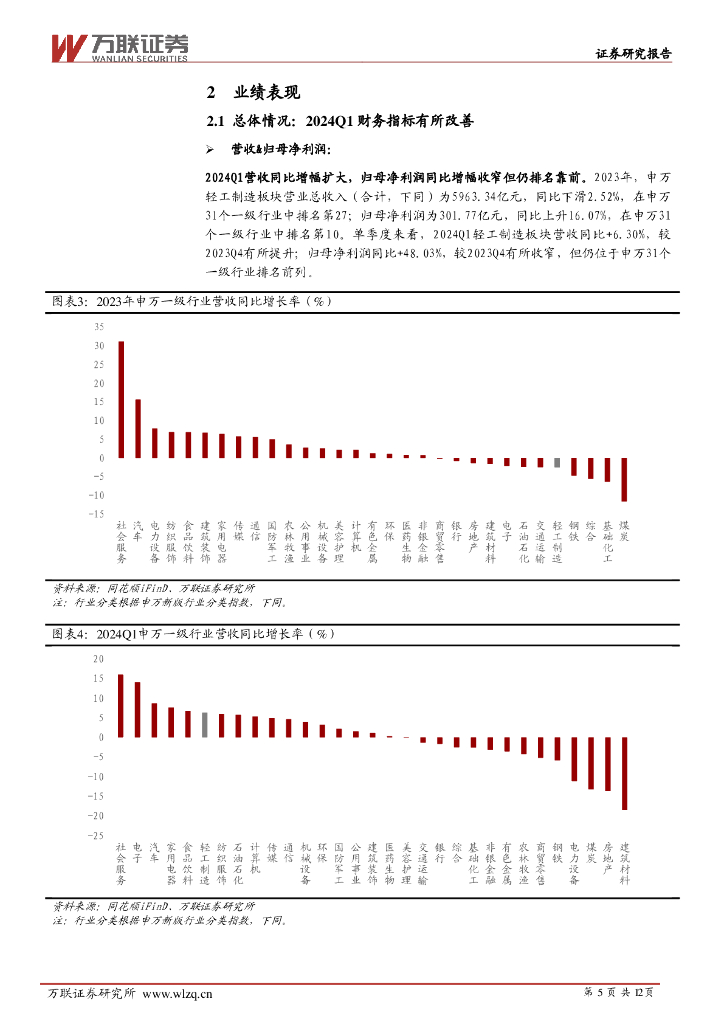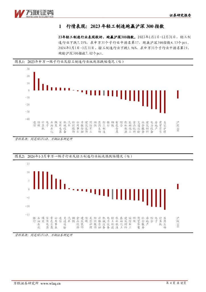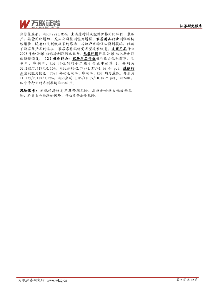 万联证券:轻工制造行业23年年报&24年一季报综述:24Q1家居和文娱用品收入端恢复较好,造纸利润端改善明显.pdf