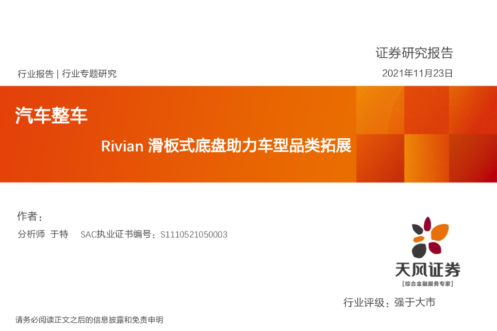 天风证券:汽车整车行业:Rivian滑板式底盘助力车型品类拓展.pdf