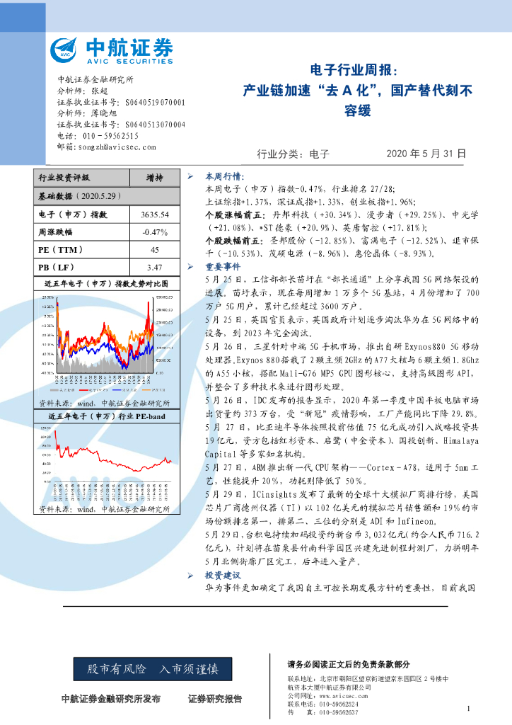 中航证券:电子行业周报:产业链加速“去A化”,国产替代刻不容缓.pdf
