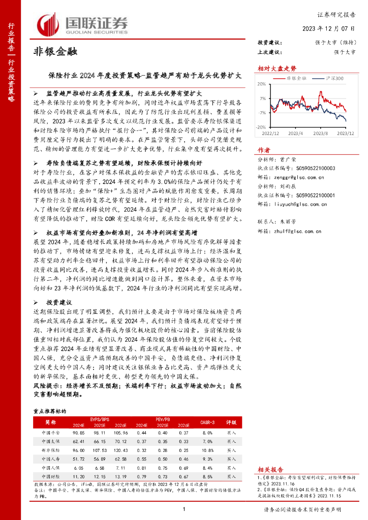 国联证券:非银金融:保险行业2024年度投资策略-监管趋严有助于龙头优势扩大.pdf