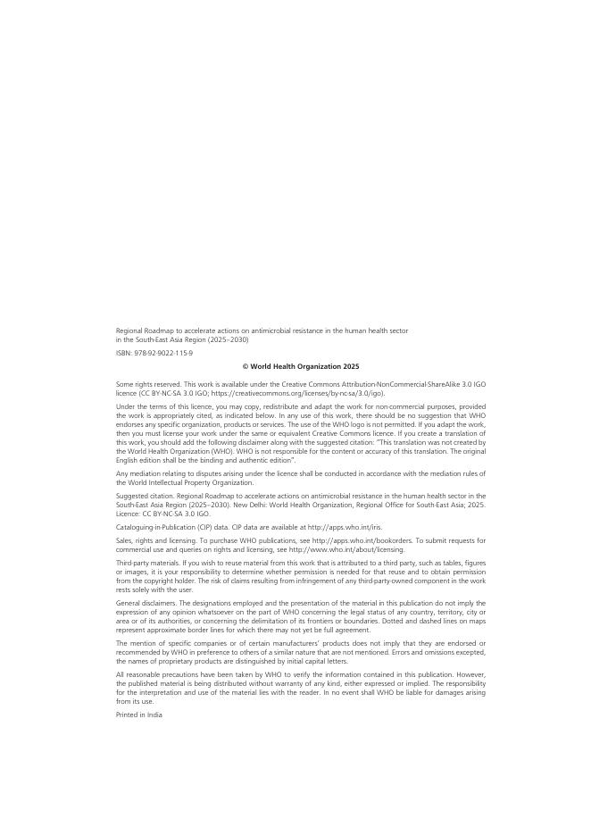 WHO世界卫生组织:2025年东南亚地区人类健康领域加速采取抗微生物药物耐药性行动的区域路线图(英文版).pdf