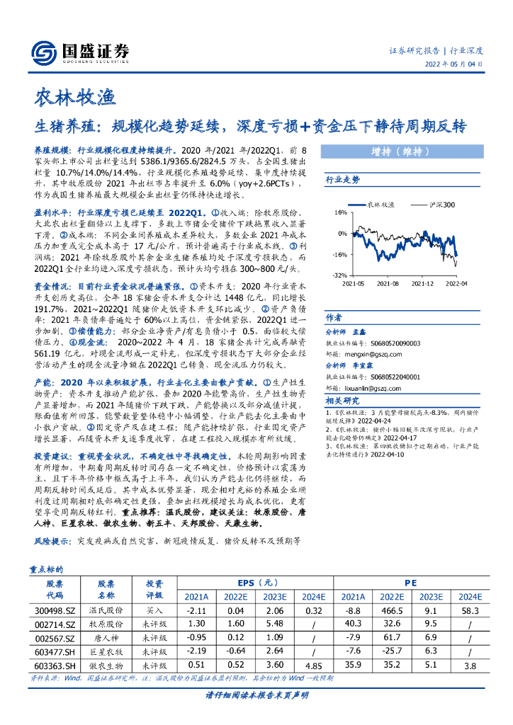 国盛证券:农林牧渔行业深度:生猪养殖:规模化趋势延续,深度亏损+资金压下静待周期反转.pdf
