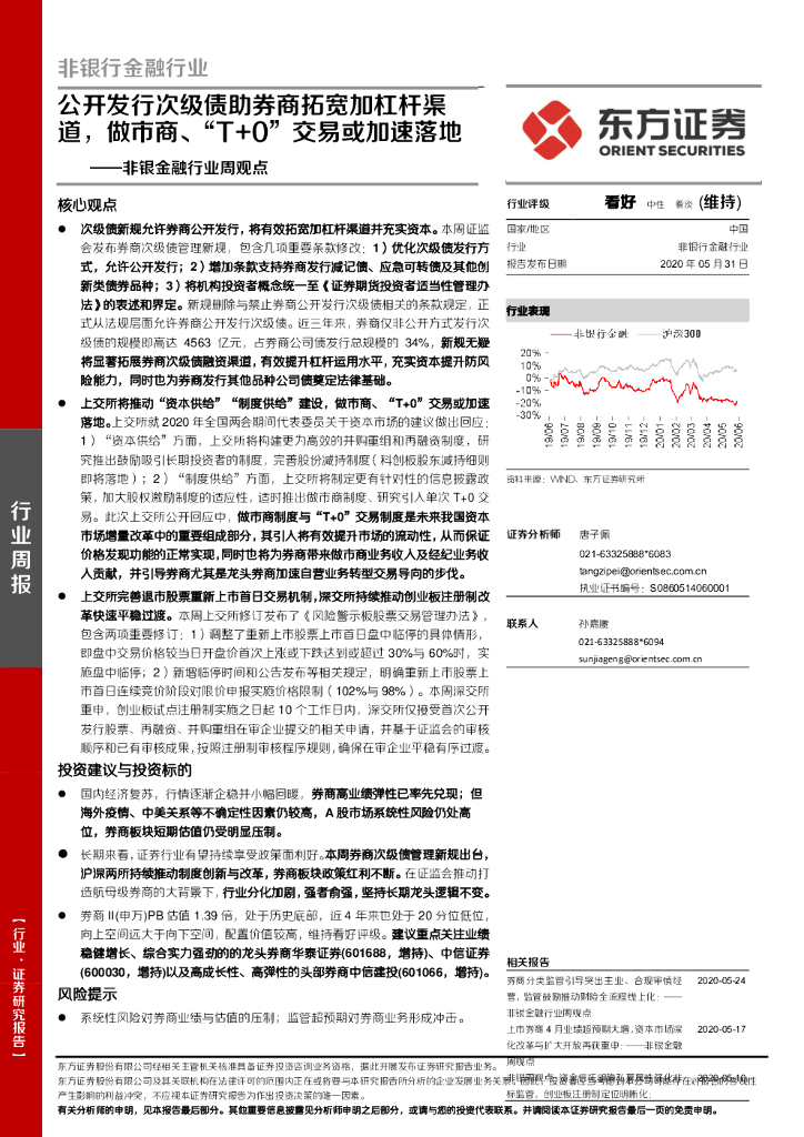 东方证券:非银金融行业周观点:公开发行次级债助券商拓宽加杠杆渠道,做市商、“T+0”交易或加速落地.pdf