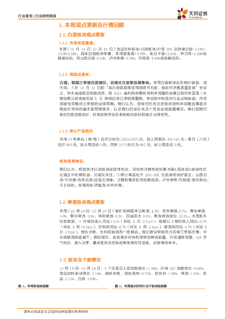 天风证券:食品饮料行业酒水饮料周报:短期关注季报兑现,后续关注政策落地效果.pdf