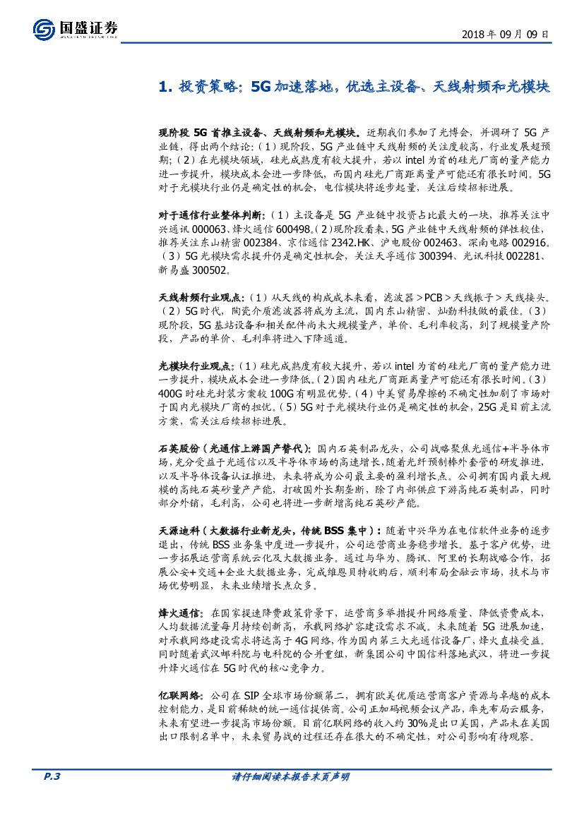 国盛证券:通信行业周报:5G加速落地,优选主设备、天线射频和光模块.pdf