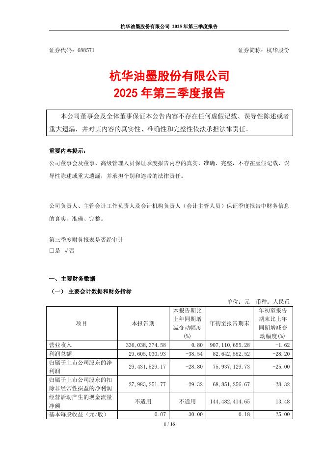 688571-杭华股份:杭华油墨股份有限公司2025年第三季度报告.pdf