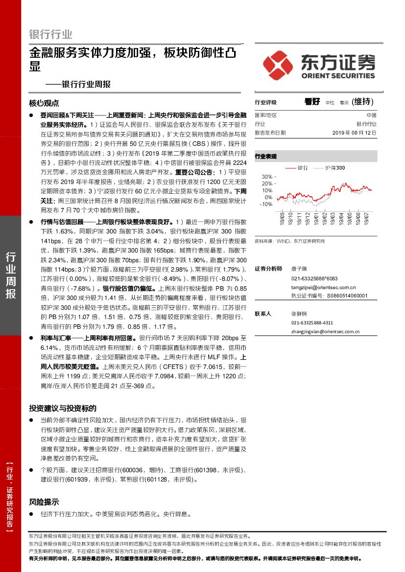 东方证券:银行行业周报:金融服务实体力度加强,板块防御性凸显.pdf